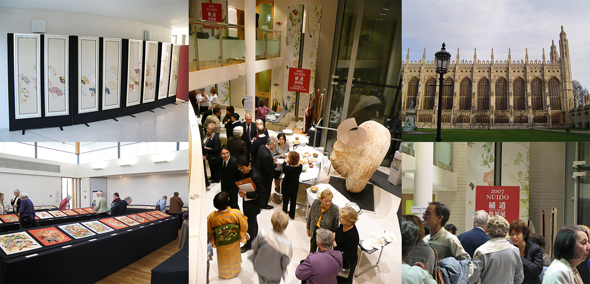その昔、百済を経て大陸より渡来してきた刺繍は千年以上もの時の流れの中で日本独特の技術として発達し、一度も海を渡ることなく現代に到りました。長いあいだ他の国から孤立していたことは、それだけ内省を深め、技を高めるに大変好都合であったと言えます。無数無名の先人達の体験と工夫、そして智恵が結集した伝統技術が文化遺産と呼ばれるのはそのためです。他の伝統芸術がそうであった様に、長い眠りからさめた繍(ぬい)の技も又、1980 年、 紅会『くれないかい』本部工房作品を数点持参してアメリカを視察訪問したことから海外への一歩が始まりました。その後、年二回渡米しての各地巡回実技指導、そして1991年、日本刺繍センター(非営利団体)をアメリカ・アトランタに開設。現在では日本刺繍実技講座がアメリカ、カナダ、オーストラリア、ニュージーランド、 南アフリカ、イギリス、フランス、ドイツ等で展開中、そして受講者の国籍14ヵ国。2000年にはニュージーランドのオークランドにて第一回世界展を開催、その後第2回2003年アメリカ ニューヨーク、第3回2007年イギリス ケンブリッジ、第4回2011年オーストラリア アデレードにて開催。第5回目は2020年に本場の日本で開催予定となっています。 この繍道を一人でも多くの人々と共有していくことを人生の仕事にしている世界中の講師陣により、繍の輪は静かにそして確実に広がりつつあります。