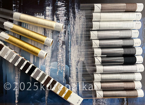 「NO.18」は、葉を落とした木々や、雪山、氷等の冬を連想させる白から黒色に移ろう糸と太陽の光を感じさせる金茶糸も入った、穏やかな冬の景色を表現するにはぴったりのセットのように感じます。