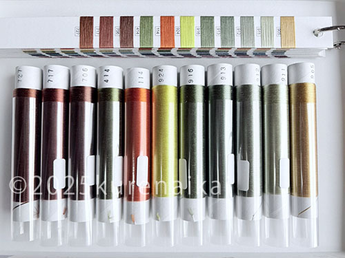 「草色」「茶」「金茶」「橙」と様々な色糸が集まったこちらの「NO.19」は11色。