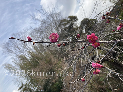 本部の敷地内の梅の花が咲き始めました。小さな蕾がとても可愛いですね。