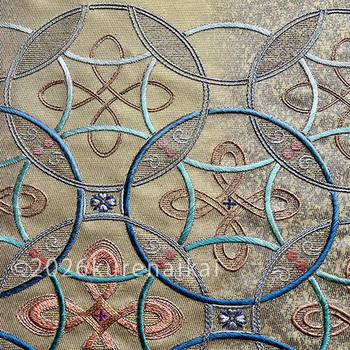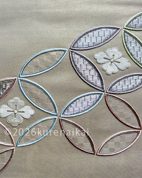 有職文様の一つなので、きちんとした雰囲気もありながら、ぬい方や配色で軽さも表現できます。